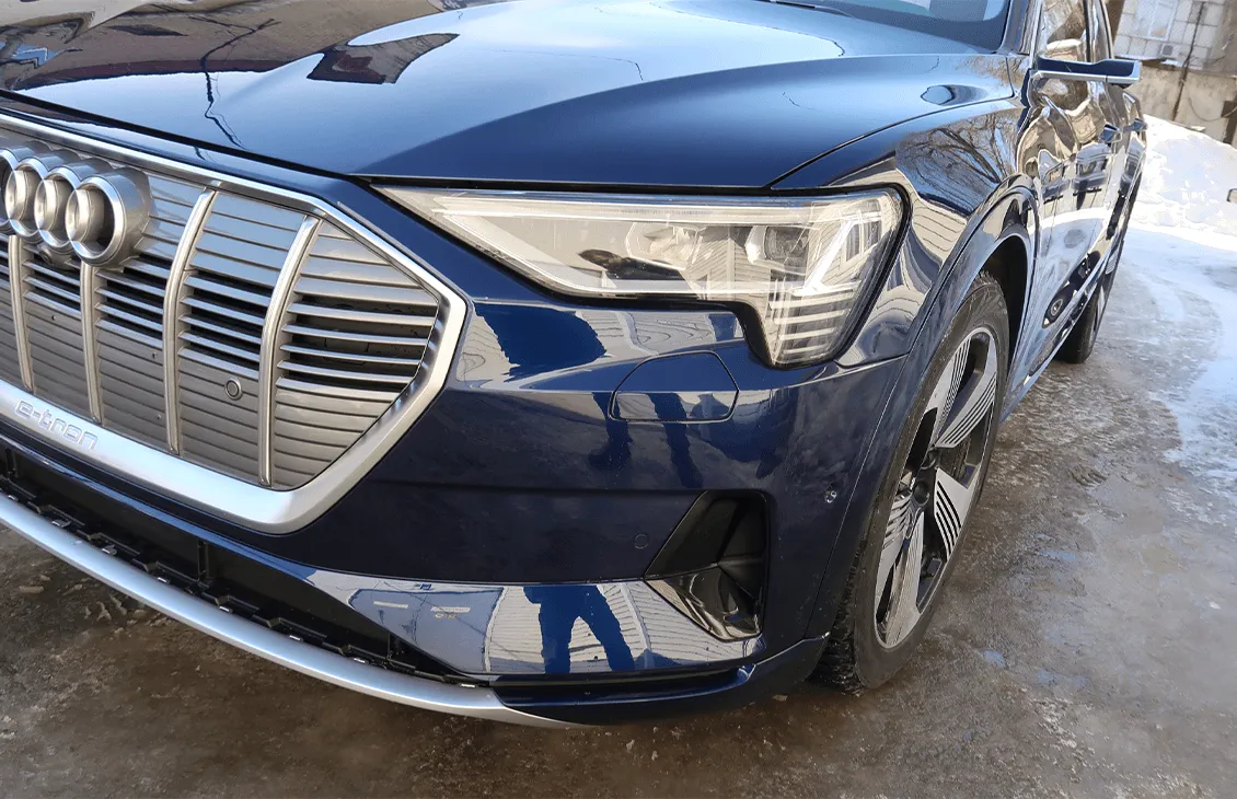 Ремонт кузова Audi e-tron начался с профессиональной диагностики и точной оценки повреждений. В ходе работ были заменены ключевые элементы передней части и восстановлена исходная геометрия кузова с последующей покраской.